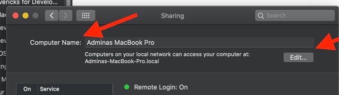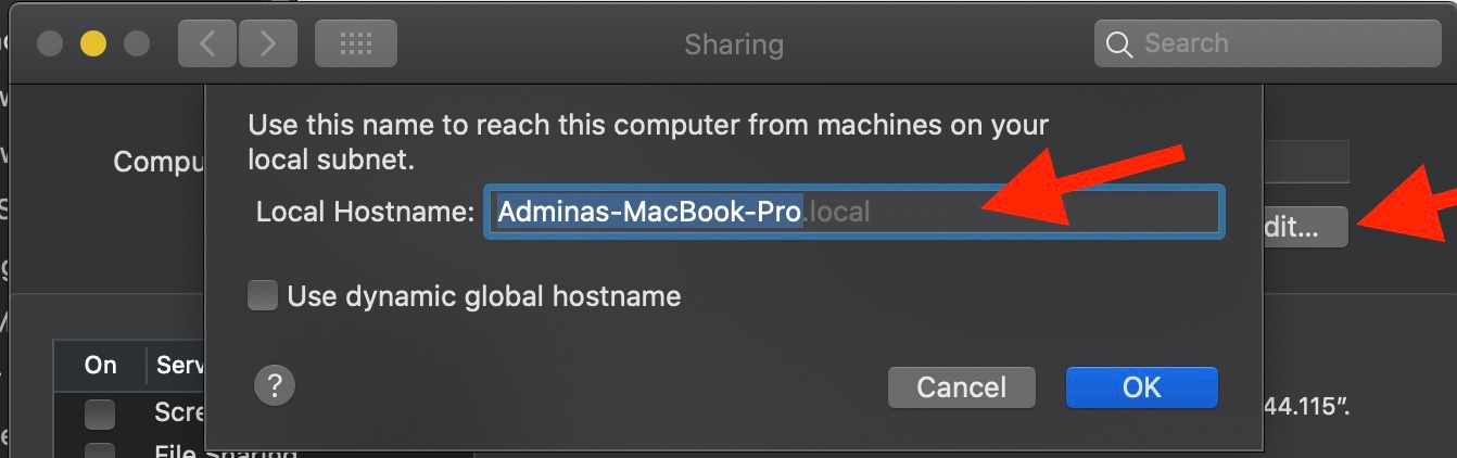 Das möchte ich nicht. Also habe ich versucht, den Gerätename zu ändern. Über Systemeinstellungen - Freigaben kann ich zwar über "bearbeiten" den Host ändern, der veröffentlichte Name bleibt aber. Auch nach Neustart. Das scheint nur intern was zu ändern.