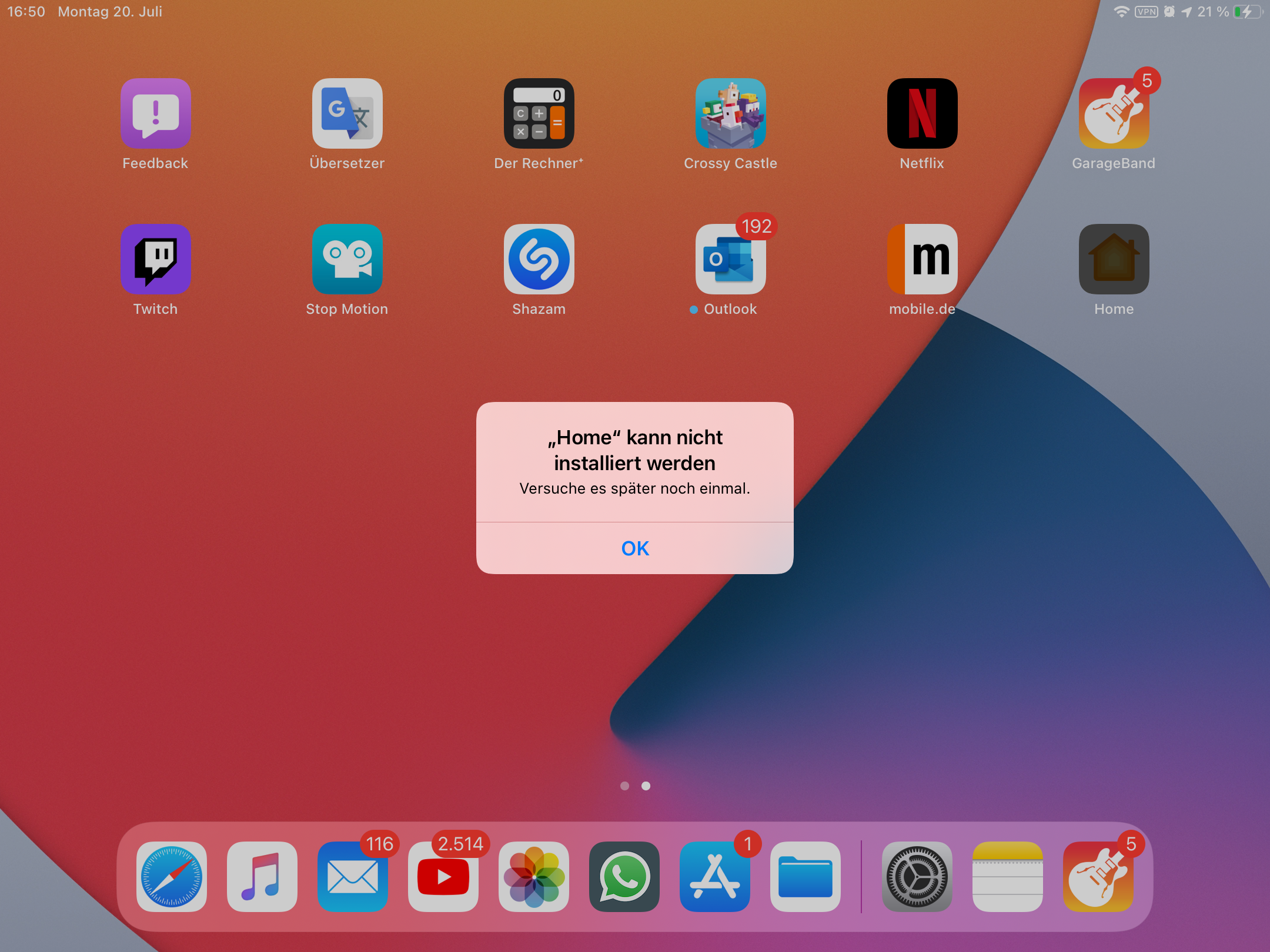 Home(kit) App konnte nicht installiert werden