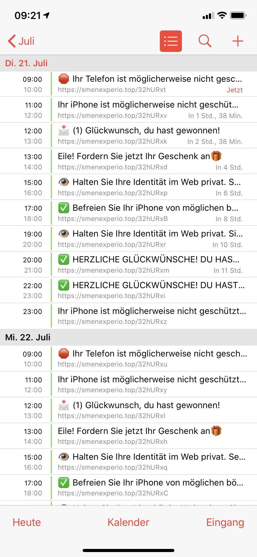 Spam Einträge im iPhone Kalender