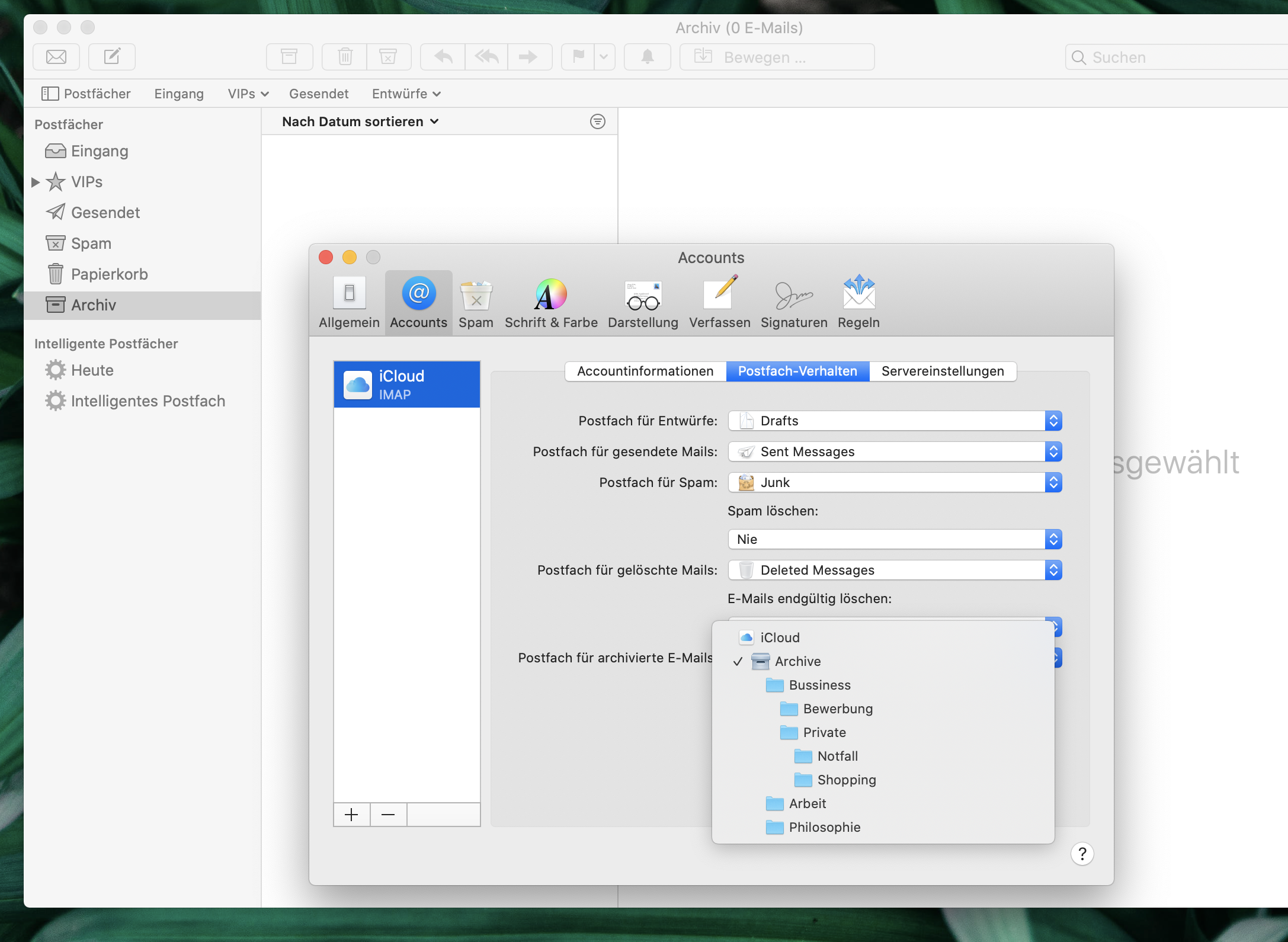 OS X Mail - Kein Zugriff auf Archiv Ordner