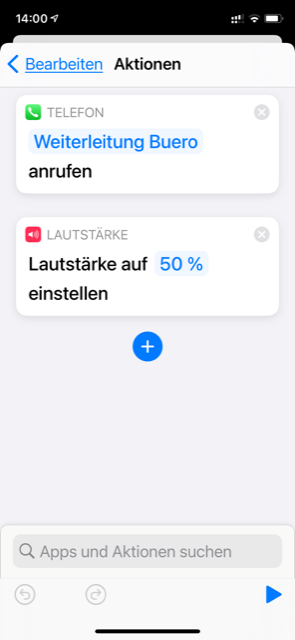 Danach fügt man noch die Aktion "URL öffnen" (URL) hinzu.