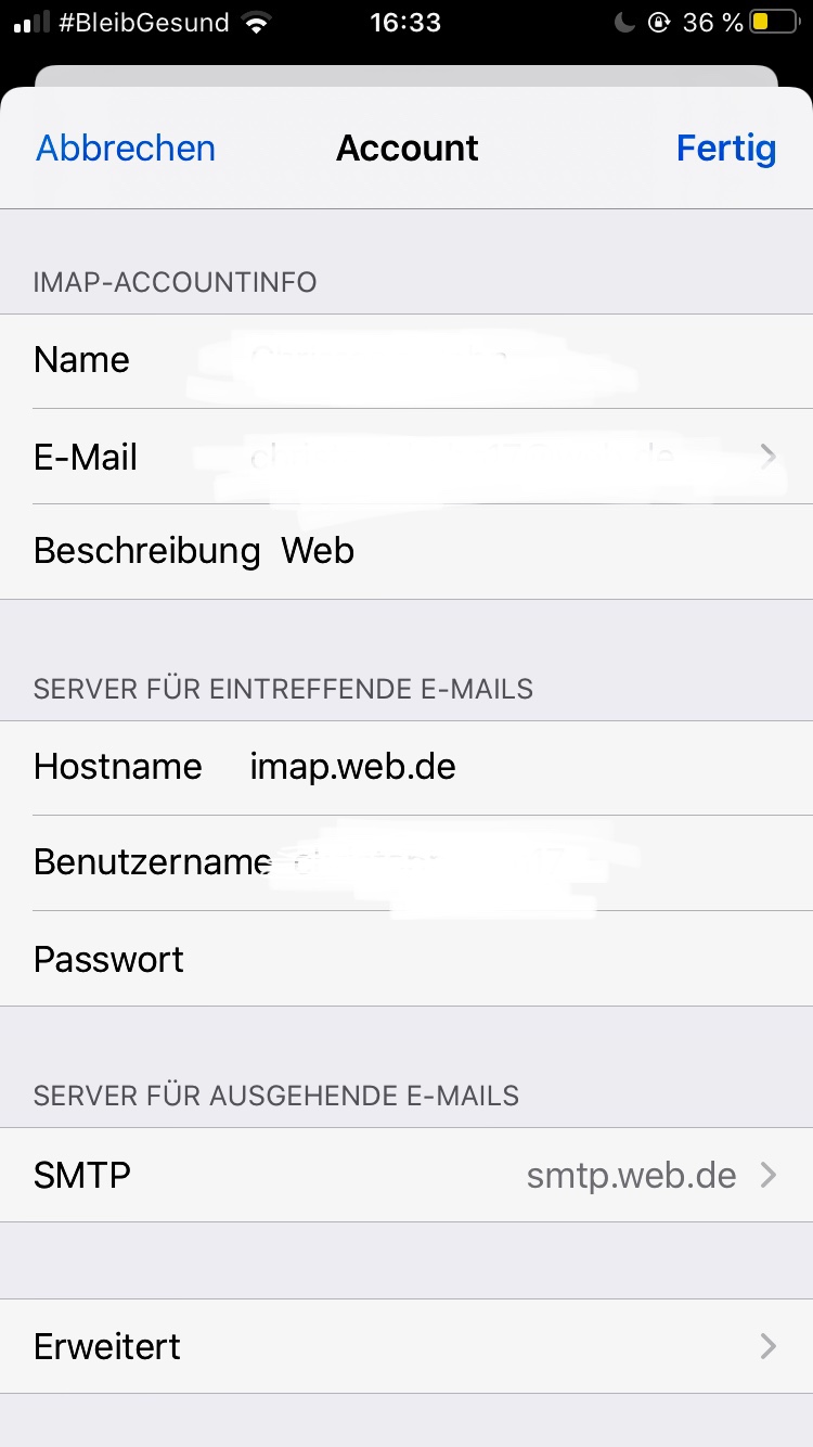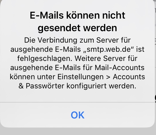 iPhone SE2020 WebDe keine Verbindung zu SMTP Mailausgangsserver