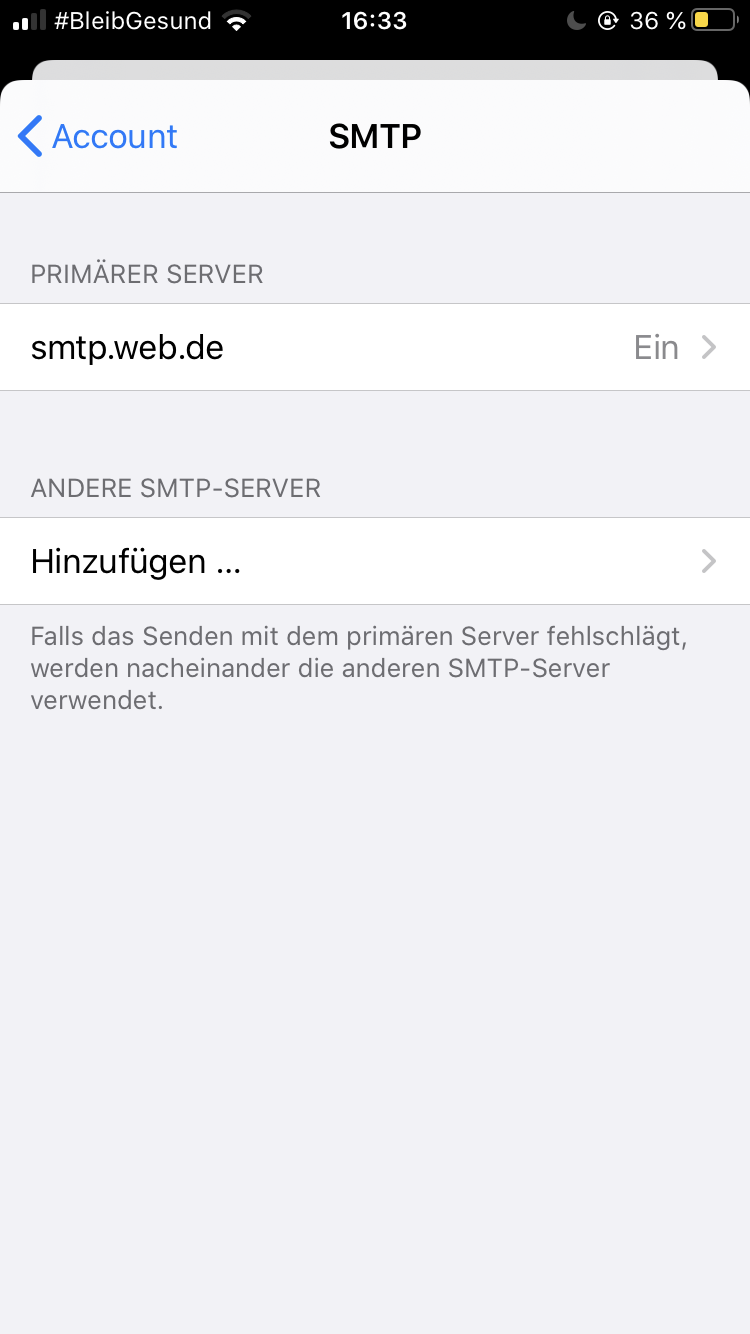 iPhone SE2020 WebDe keine Verbindung zu SMTP Mailausgangsserver