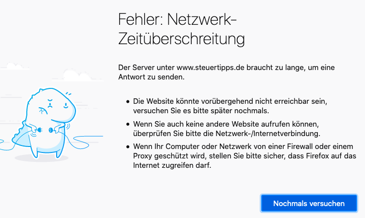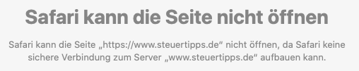 Seit einigen Tagen (jedenfalls habe ich es vor einigen Tagen erstmals bemerkt) öffnet Safari eine bestimmte Website nicht: www.steuertipps.de. Auch Firefox kann die Seite nicht laden. Konkrete Hinweise erhalte ich auch nicht.