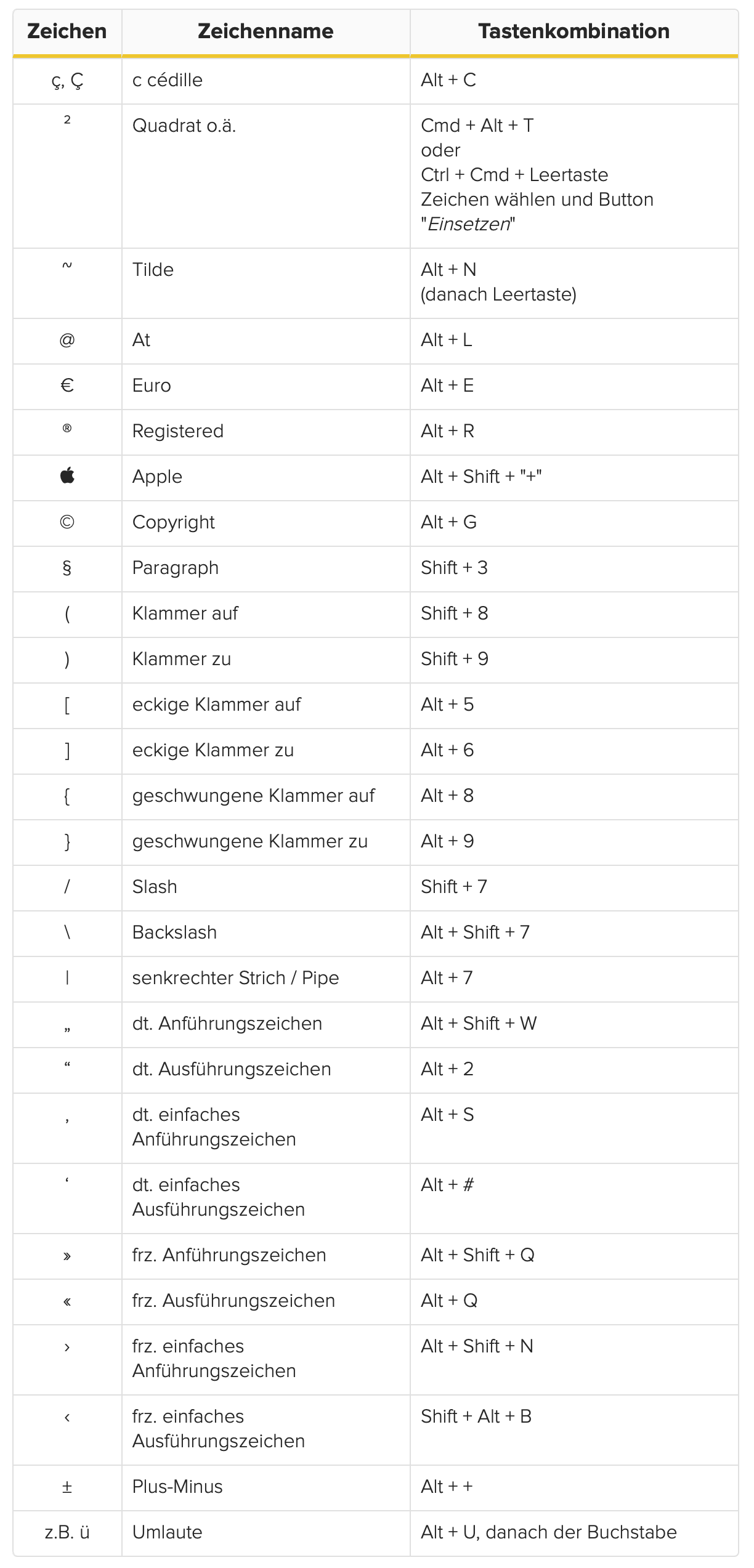anbei eine Übersicht, der geläufigen Tasten-Kombinationen: