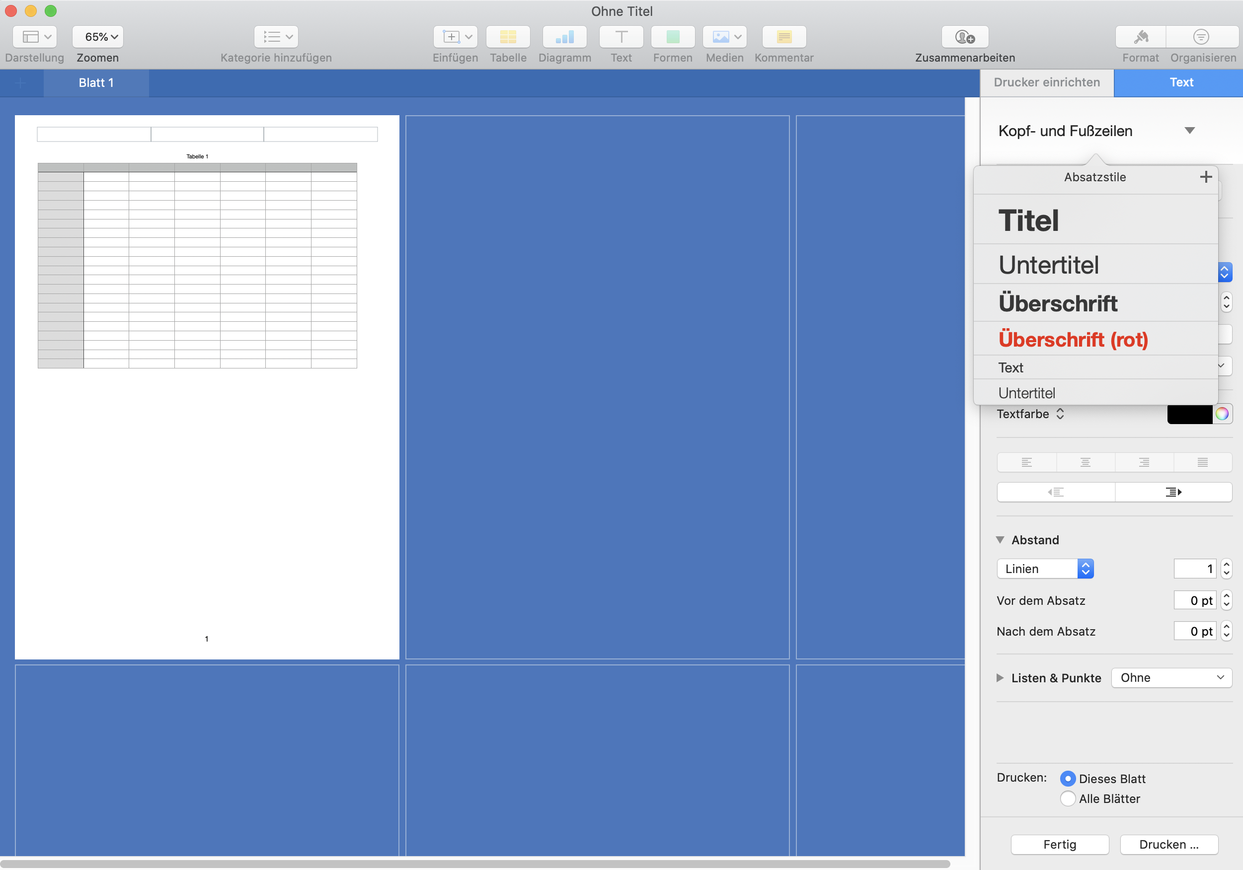 Arbeite gerade in Numbers und habe ein Problem mit der Kopf- und Fussleiste.
