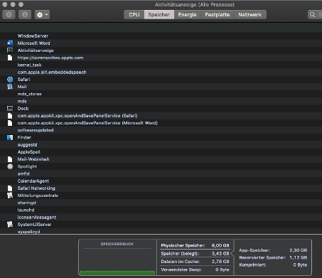 ich habe vorgestern das Update gemacht, habe ein Mac Air 2017, und seit dem Update habe ich ne RAM-Auslastung von über 3GB, nur wenn ich ein mini Word Dokument und ein Safari Fenster mit 5 Tabs auf habe und der Cache ist auch mit über 4GB dabei...