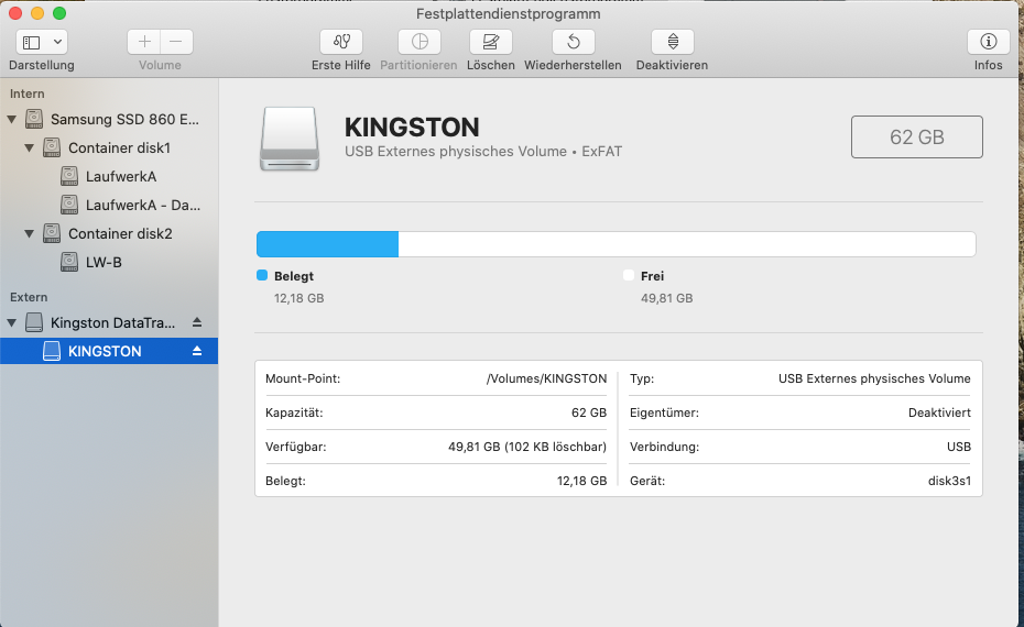 - Kopie auf exFat formatiertem USB-Stck