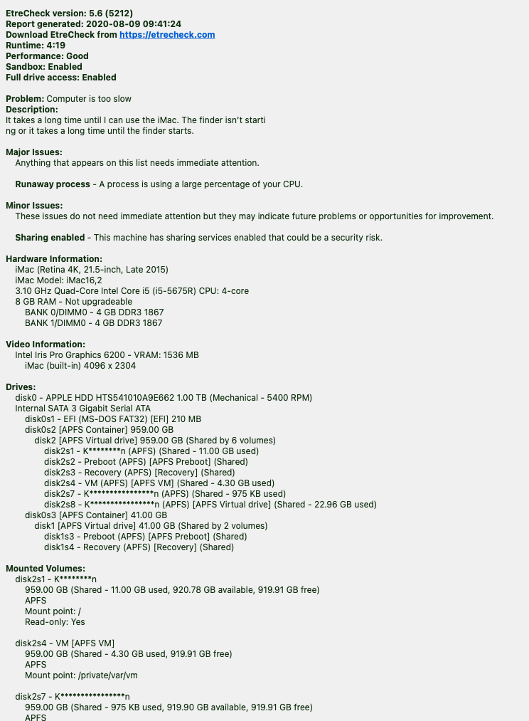 iMac (Retina 4K, 21,5", Ende 2015) ist sehr sehr langsam