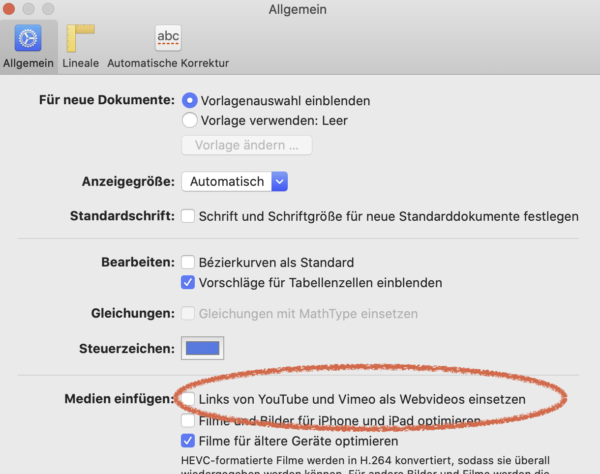 Videofunktion in Pages 10.1 deaktivieren?