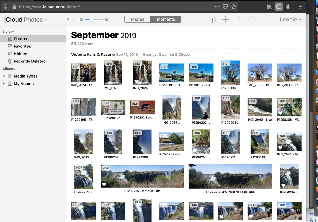 • Im Reiter "Momente" sind die Fotos nach dem Aufnahmedatum und dem Ort sortiert.