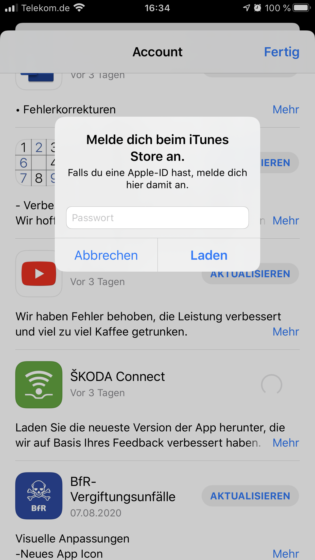 Beim Aktualisieren von Apps im App Store kommt ständig die Meldung : "Melde dich beim iTunes Store an. Falls du eine Apple-ID hast, melde dich hier damit an." Wenn ich dann das Passwort eingebe, kommt die Meldung "Prüfung fehlgeschlagen. Diese Person konnte nicht gefunden werden". Ich bin im App Store richtig angemeldet! Was kann ich tun?