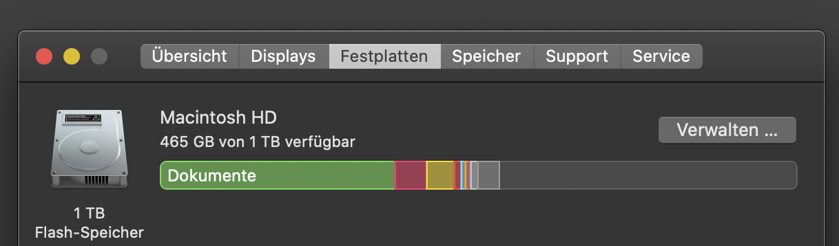 gerne gebe ich dir eine Hilfestellung. In der linken oberen Ecke findest du das bekannte Apple-Logo, sowie die Ansicht “Über diesen Mac”. Gehe nun in den Tab "Festplatten", dort zur Option "Verwalten".