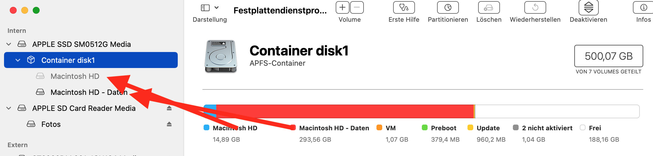 Wie kann man bei einem APFS Container ein einzelnes Volume löschen?