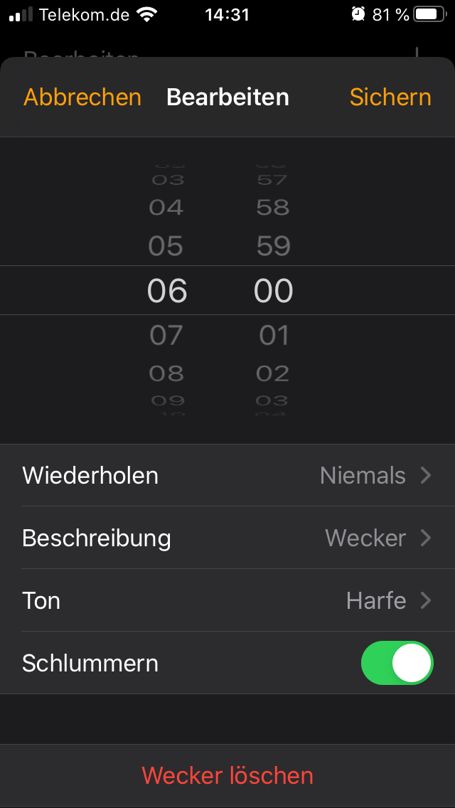 Wie kann ich die Lautstärke des Weckers einstellen?