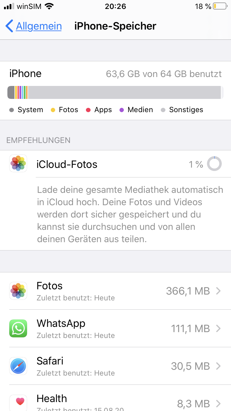 Zeigt mir das Speicher voll ist obwohl ich freien Speicher Platz habe?