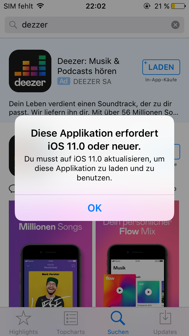 iPhone 5s: App kann nicht heruntergeladen werden, weil die Software des iPhones diese nicht unterstützt