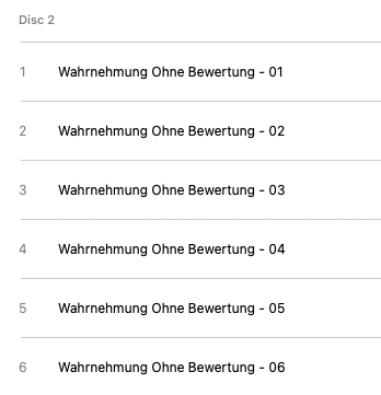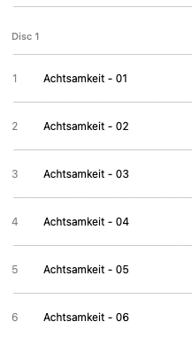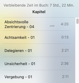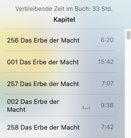 Und hier ist dann alles durcheinander. Die Titel (z.B. 001, 002 ...) erscheinen auch nicht in der richtigen Reihenfolge. Wenn ich das Hörbuch dann auf mein iPhone (Xs OS 13.6.1) per "Finder" lade, ist das "Durcheinander" übertragen und es lässt sich nichts sortieren (auf dem Mac übrigens auch nicht).