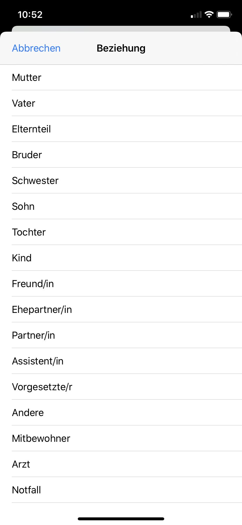 Meine Frage war wie ich eigene Namen hinzufüge zu den Notfallkontakten