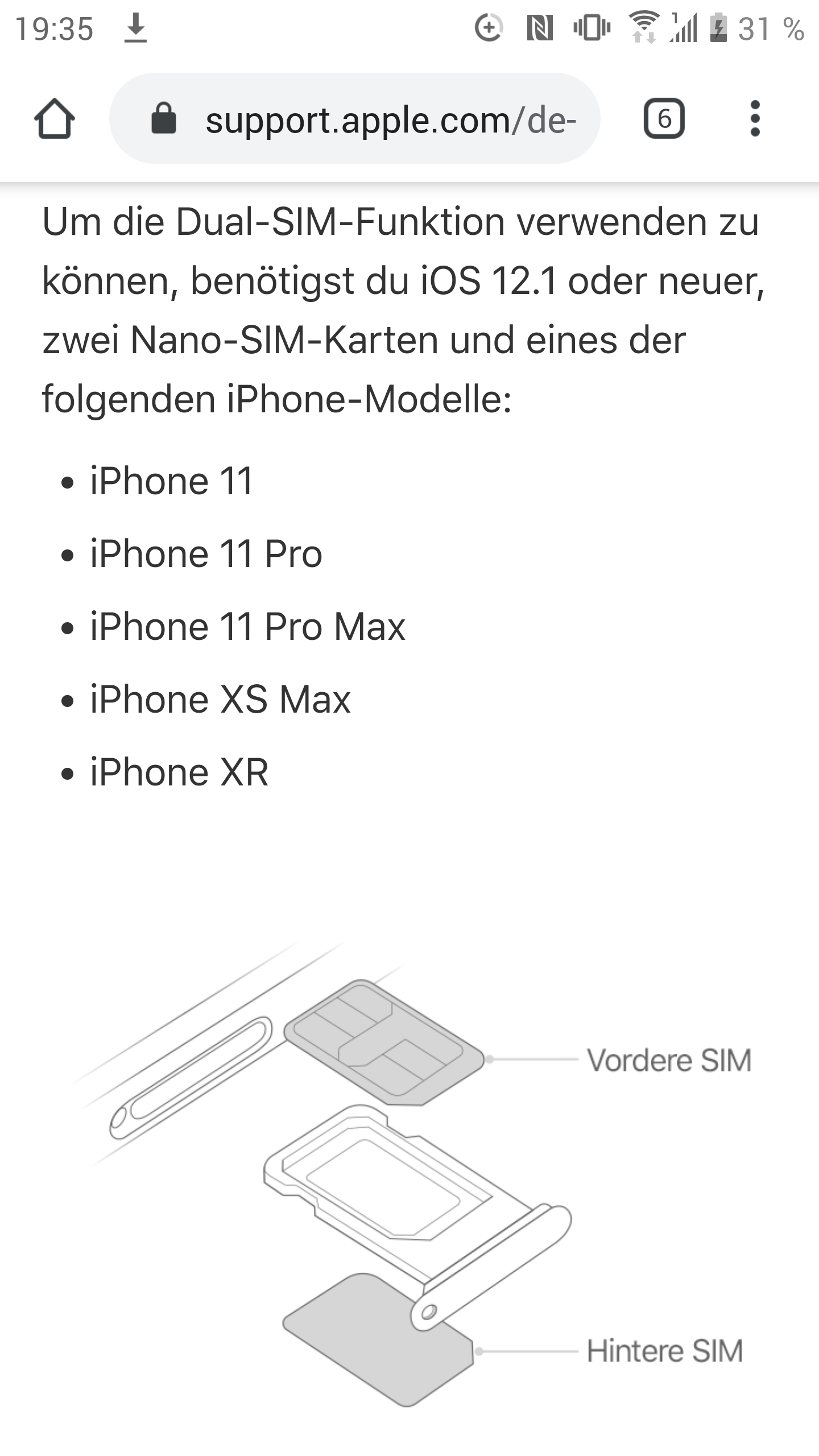Wenn Dual-SIM mit zwei Nano-SIM-Karten auf deinem iPhone nicht funktioniert - Apple-Support
