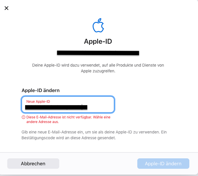 Ich hab jetzt eine Apple ID mit der Domäne @abc.com und will diese auch @def.de ändern.