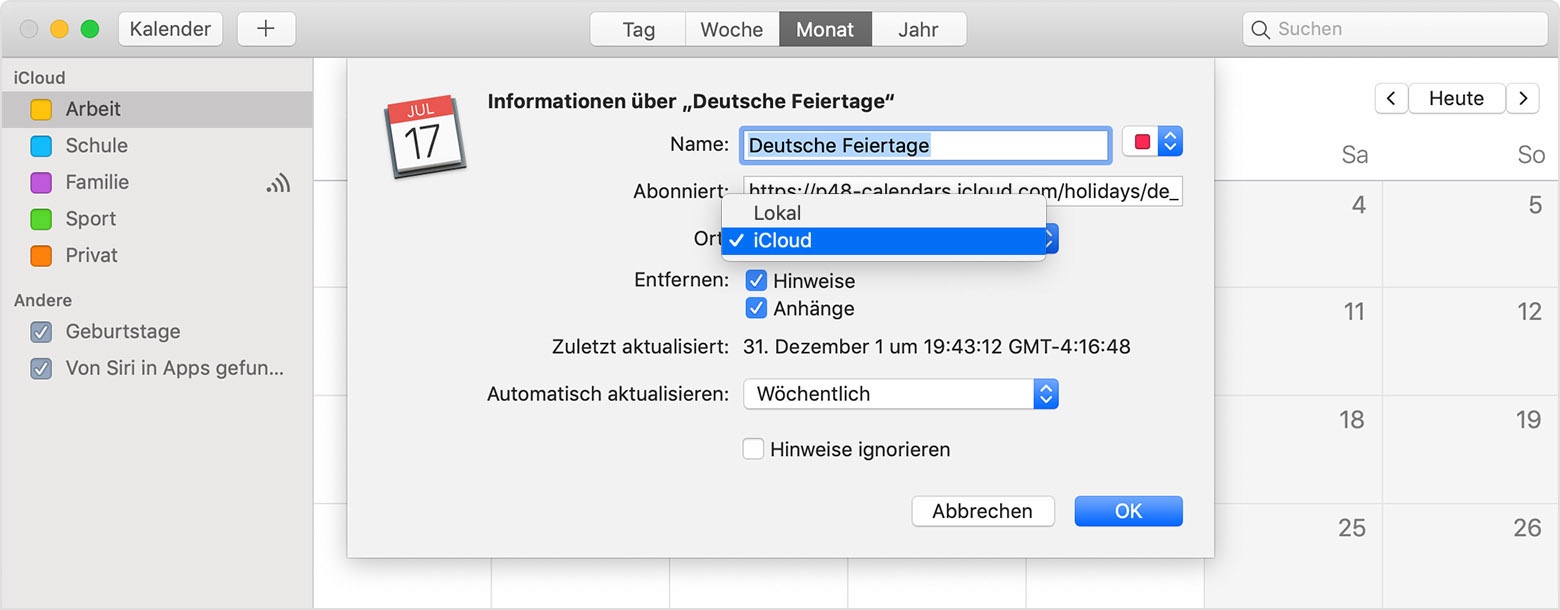 iCloud-Kalenderabonnement auf dem Mac einrichten
