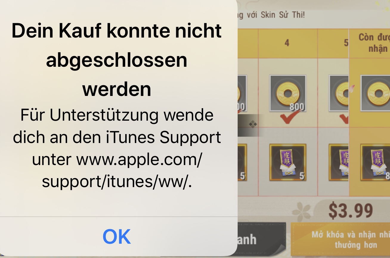 “Dein Kauf konnte nicht abgeschlossen werden„