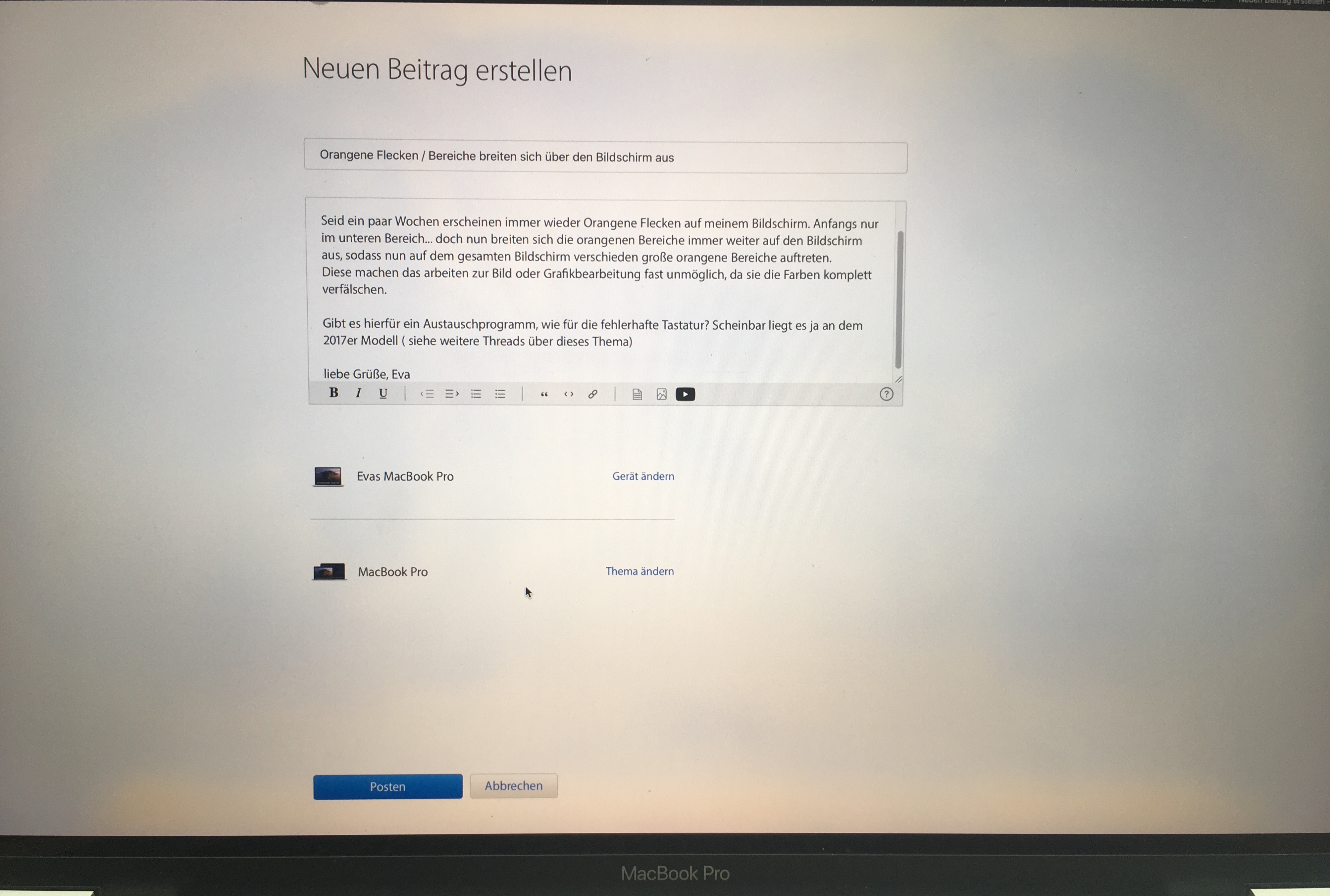 Gibt es hierfür ein Austauschprogramm, wie für die fehlerhafte Tastatur? Scheinbar liegt es ja an dem 2017er Modell (siehe weitere Threads über dieses Thema).