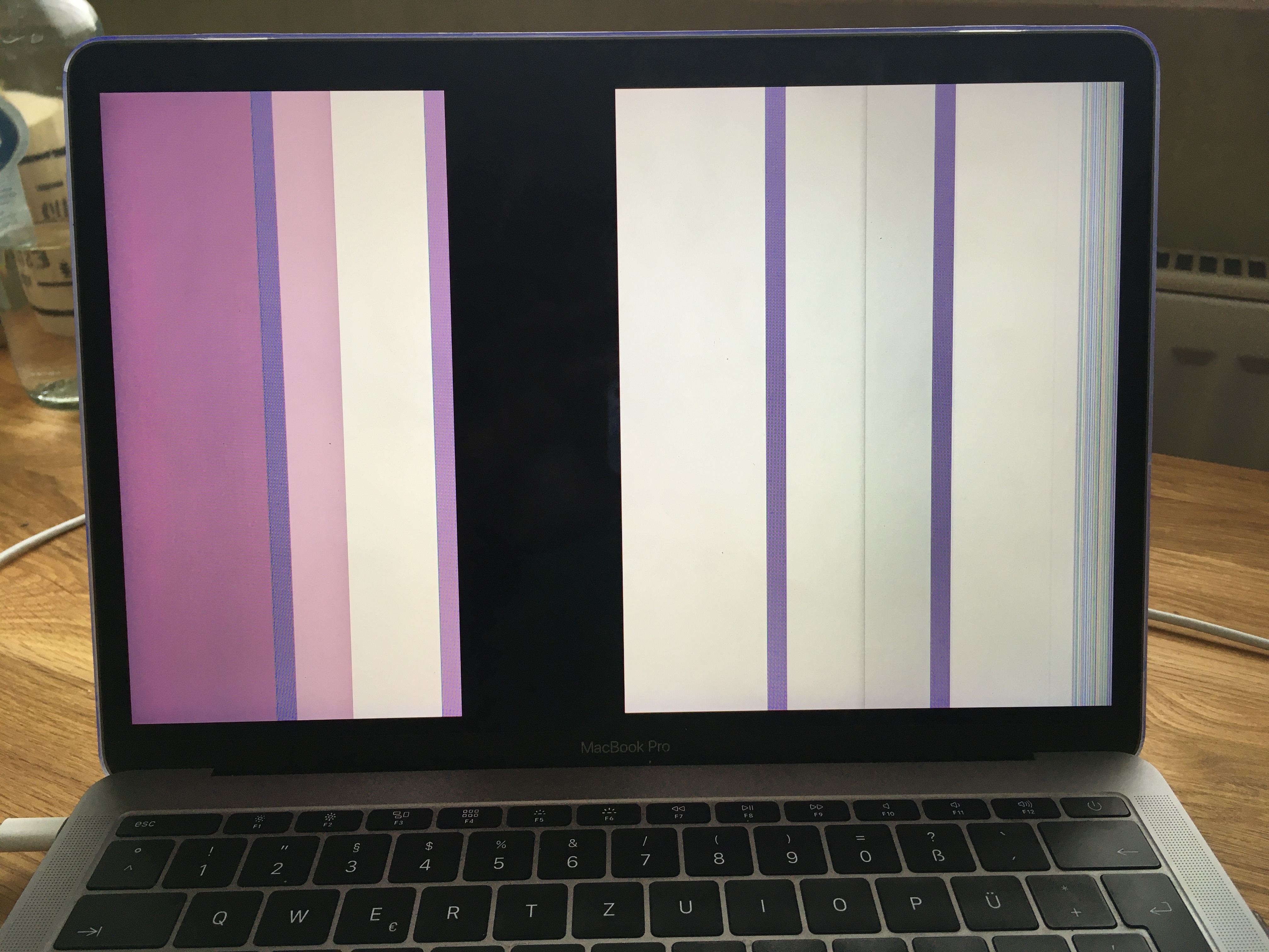 ich habe seit gestern bei meinem MacBook Pro 2016 ein seltsames horizontales lila-blaues Flackern. Die Linien springen hin und her. Habe schon die gesamte Festplatte neu formatiert und komplett gelöscht und auch die Fehleranalyse laufen lassen (Taste “D” beim Einschalten). Ergebnis: keine Fehler gefunden.
