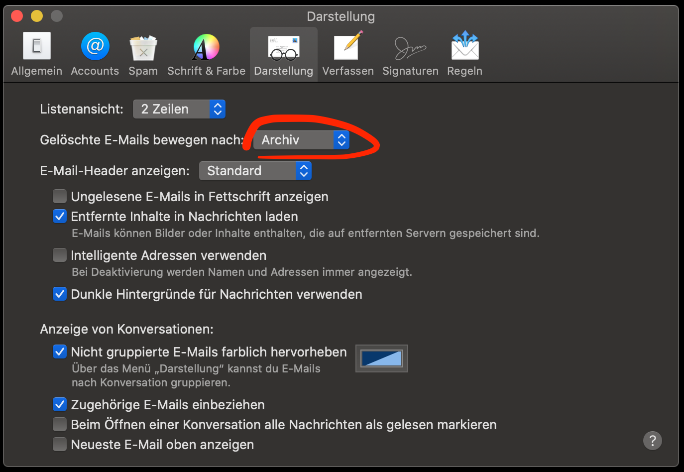Statt zu "Löschen" würde ich gerne hier "Archivieren" -- ist das möglich?