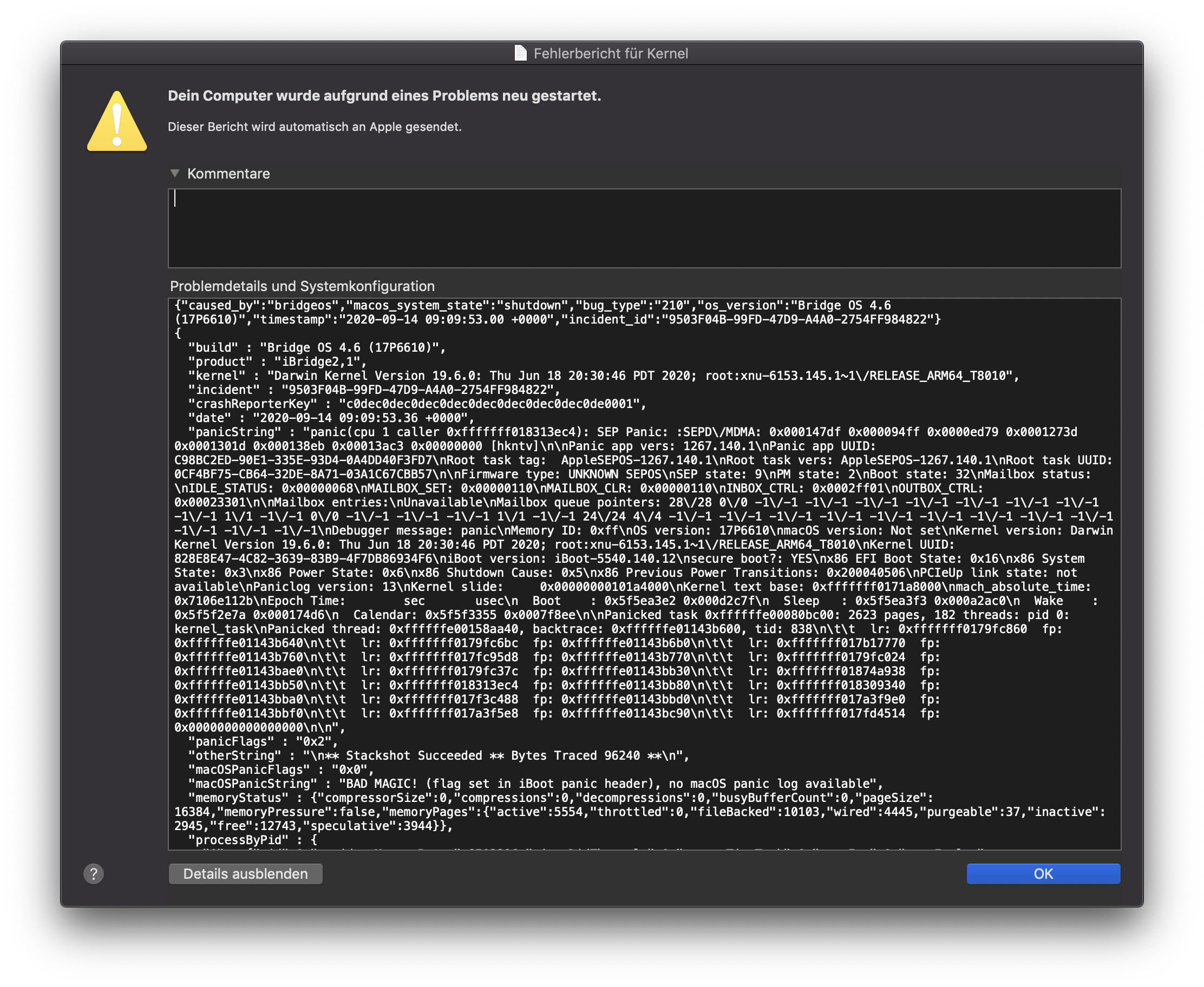 Fehlerbericht für Kernel / Problemdetails und Systemkonfiguration: