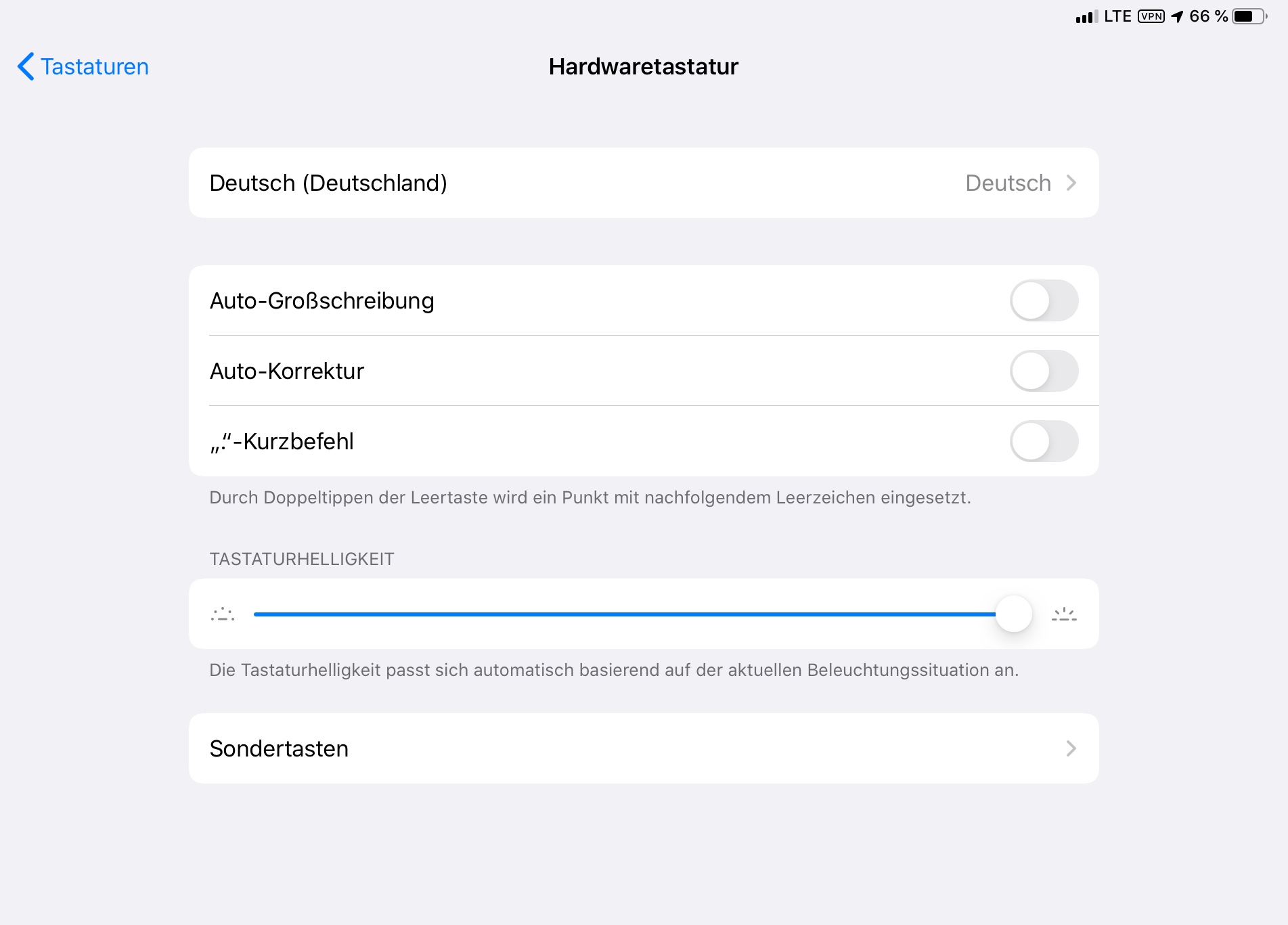 Wechseln zwischen Tastaturen unterschiedlicher Sprachen auf dem iPad mit einer externen Tastatur