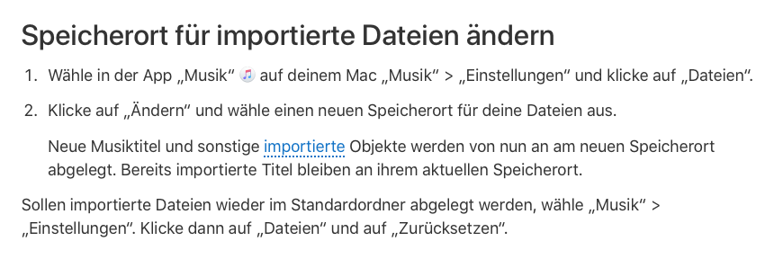 Ändern des Speicherorts für Musikdateien auf dem Mac