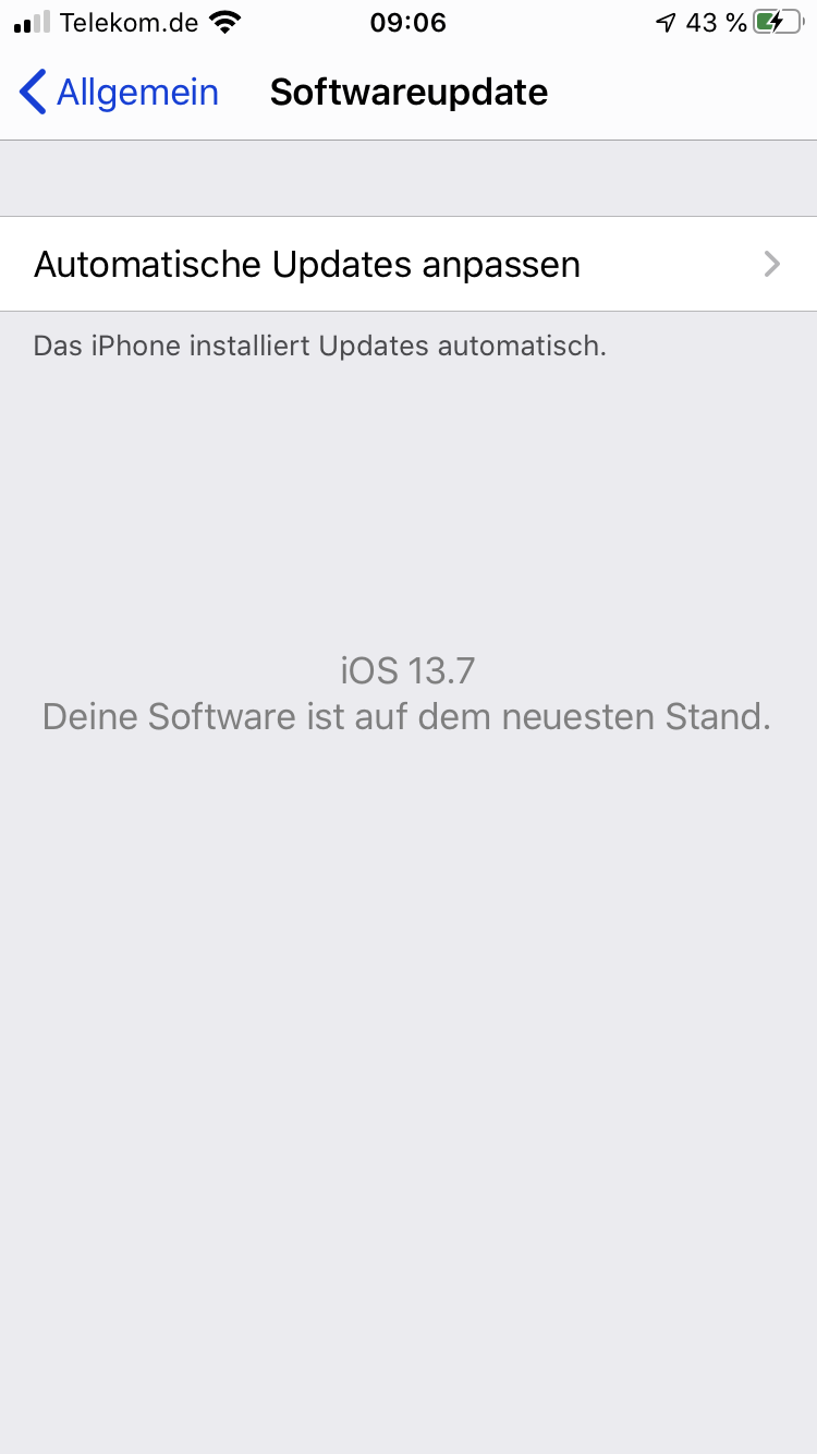 Zur Zeit befindet sich iOS 13.7 auf dem Gerät.