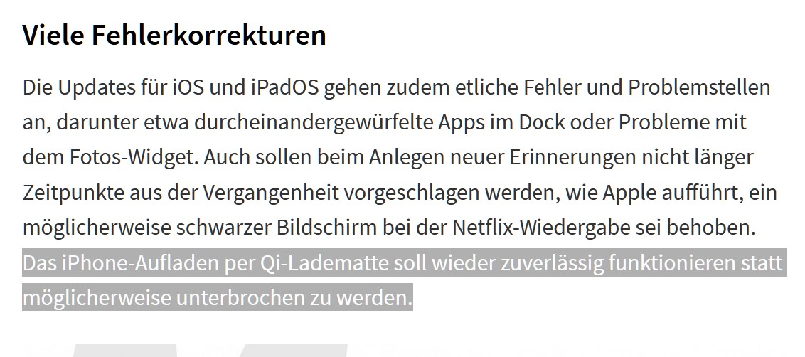 nach Update auf ios 14 induktives Laden nicht fehlerfrei