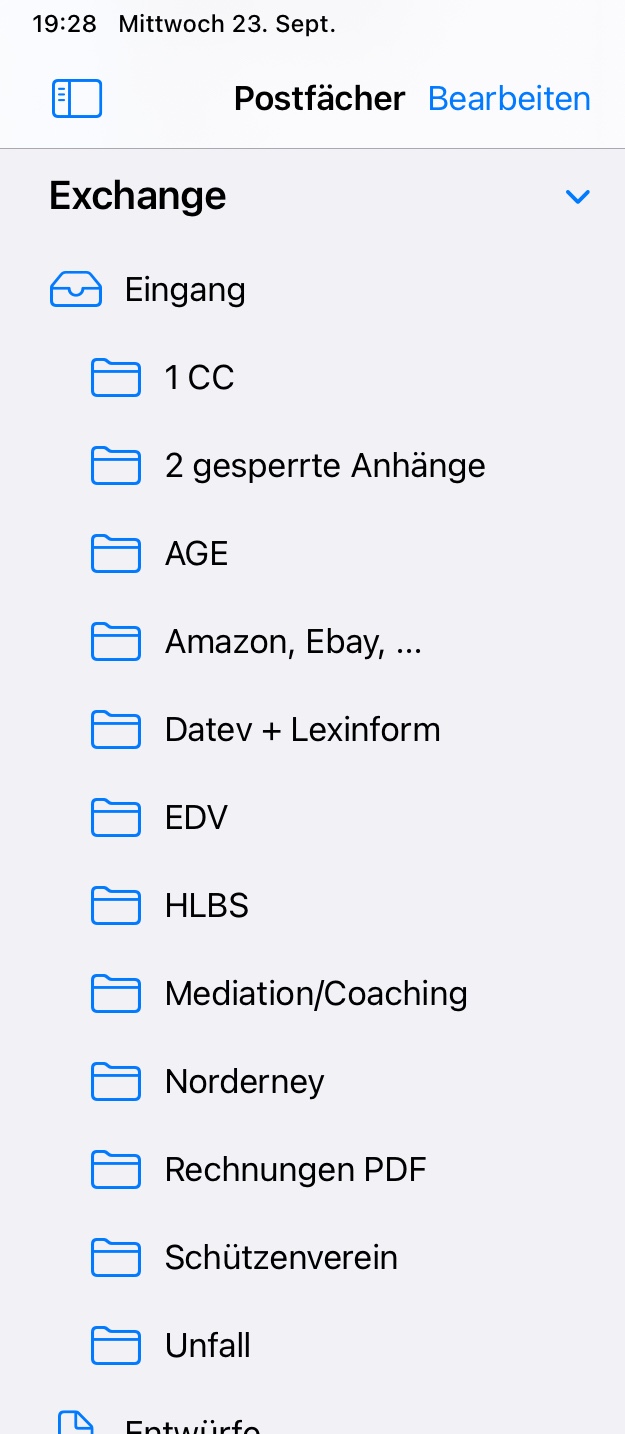 mein Exchange Konto auf meinem Ipad synchronisiert alle Unterordner und alle Kalende, bis auf den „Eingang“ - sämtliche Unterordner, die ich in meinem Firmen - Outlook angelegt haben. Der Posteingang bleibt leer. Bei den Kalender ist es ähnlich meine Hauptkalender wird nicht synchronisiert - andere angelegte Kalender schon?