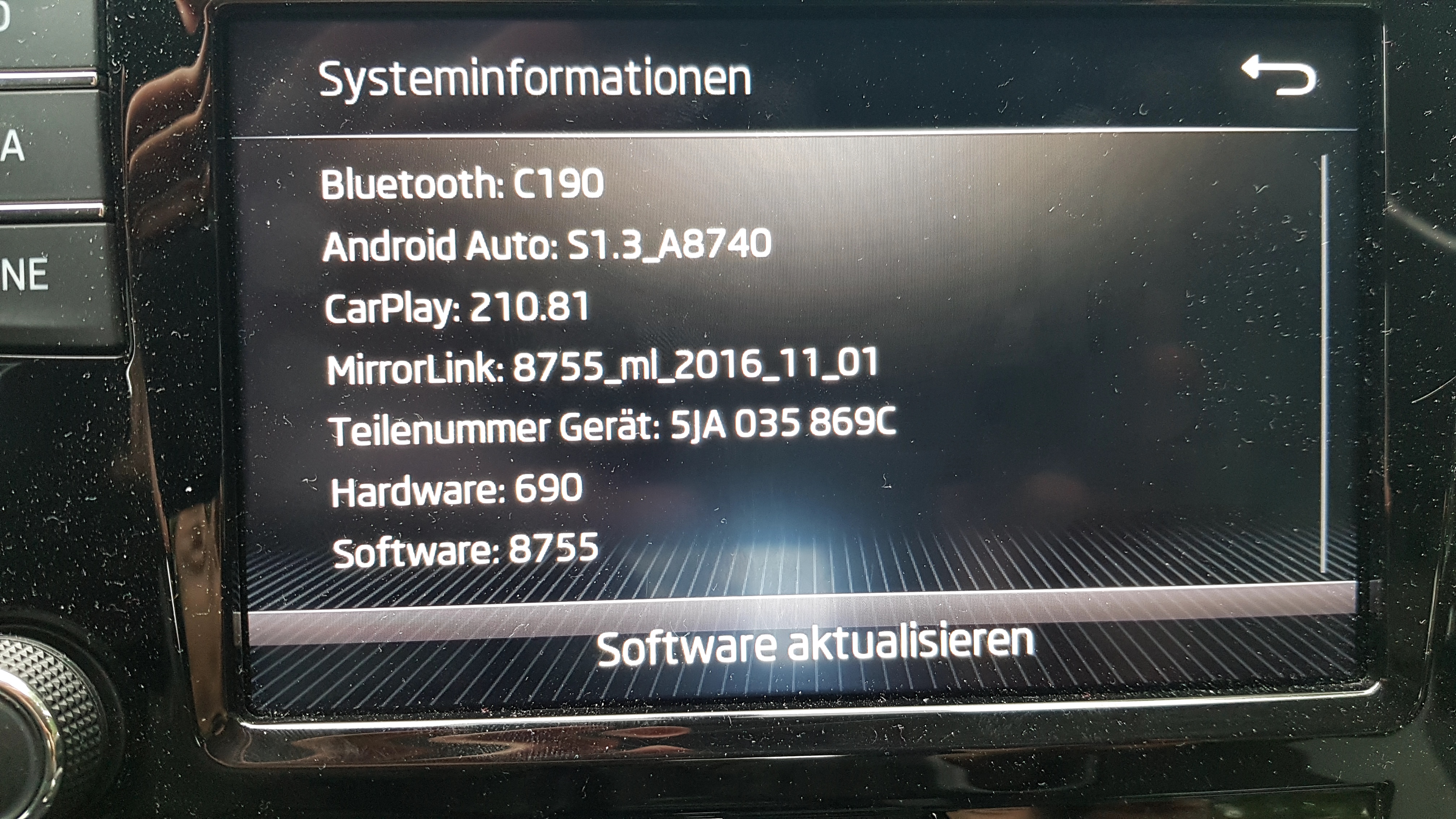 Vorher war die Softwareversion 8740 installiert. Jetzt neu ist die 8755. Weiß natürlich nicht ob das bei jedem Radio von Skoda gleich ist, aber vielleicht hilft es dem ein oder anderen.