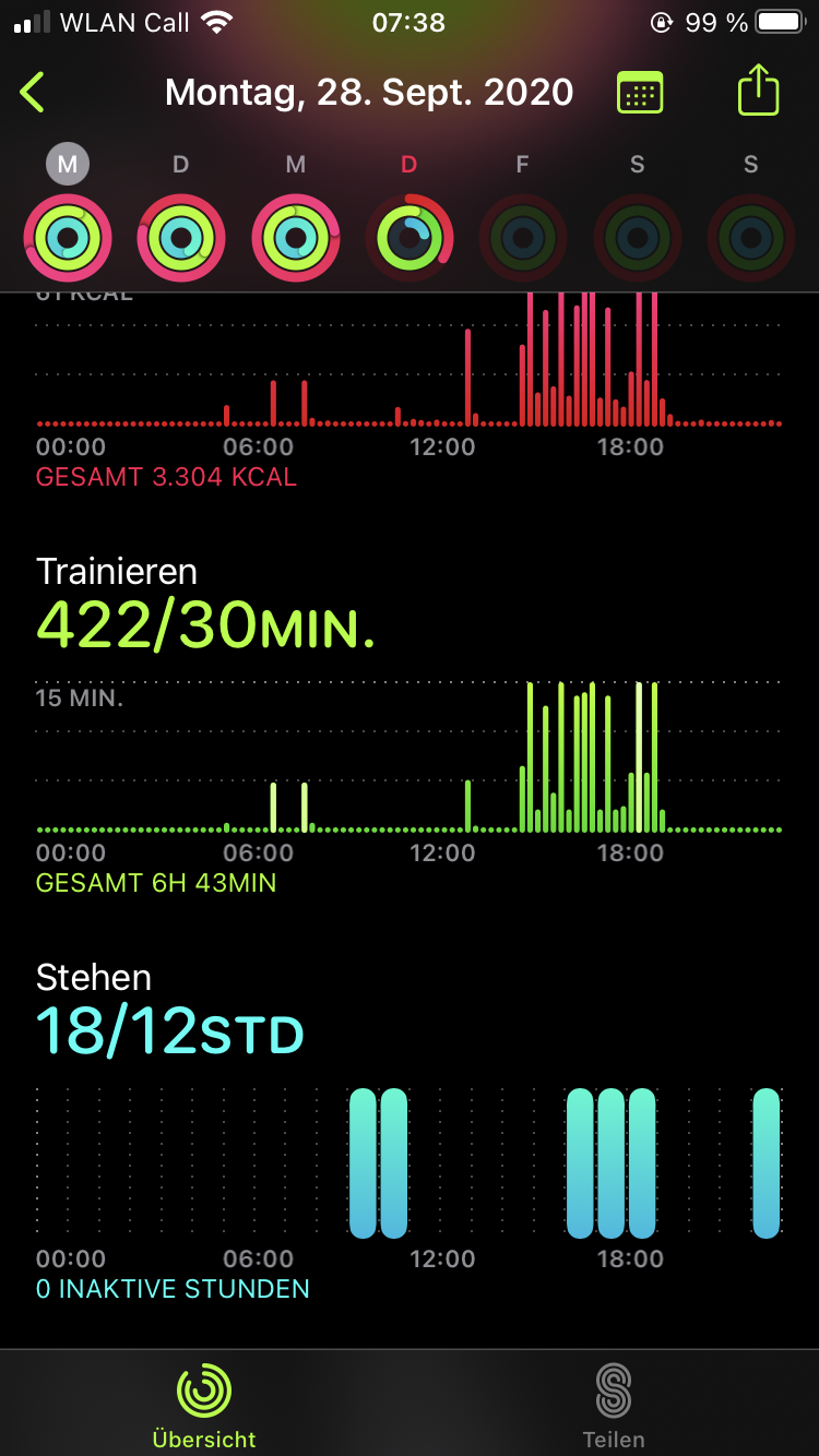 Dafür habe ich nun massive Probleme mit der Aktivitäten-App, die ich unter watchOS 7.0 nicht hatte (!).