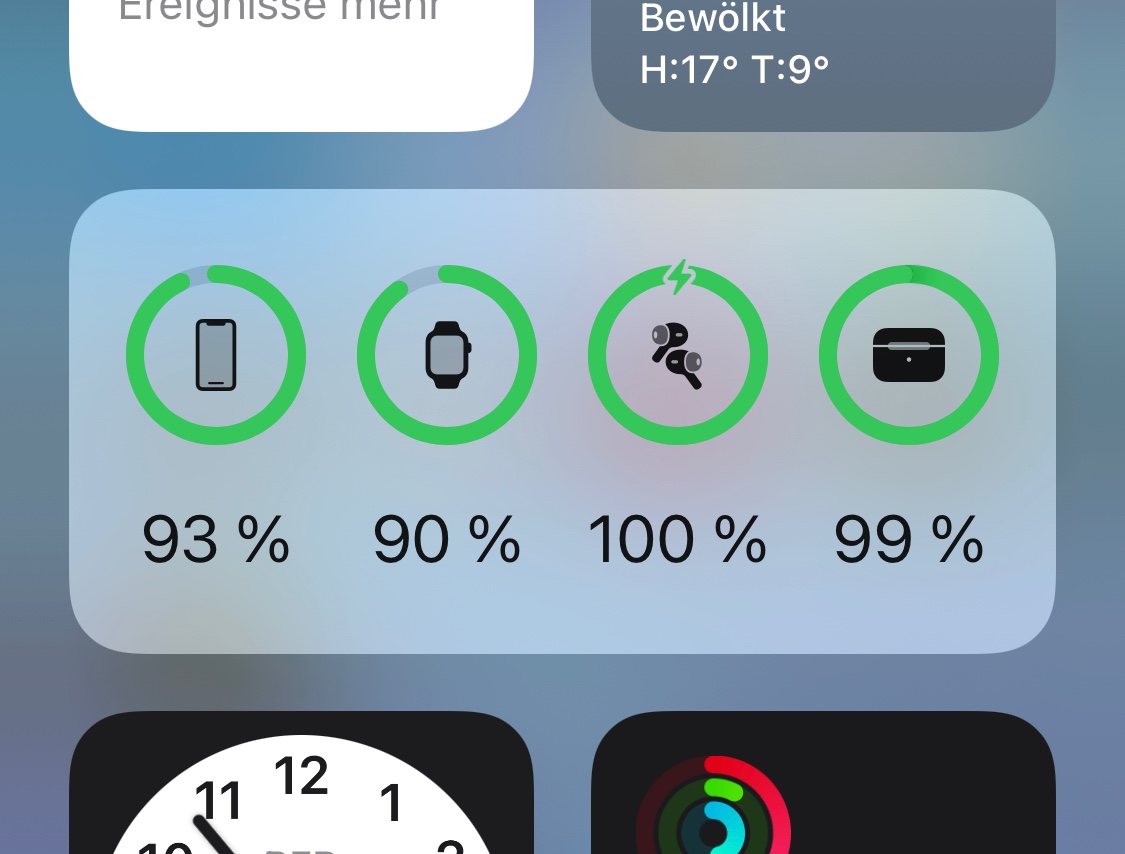 Zum Beispiel Kopfhörer. Also wenn du Kopfhörer hast, werden die dann noch mit angezeigt. Und im vierten Feld zum Beispiel die Box der Kopfhörer da diese ja auch einen Akku hat.