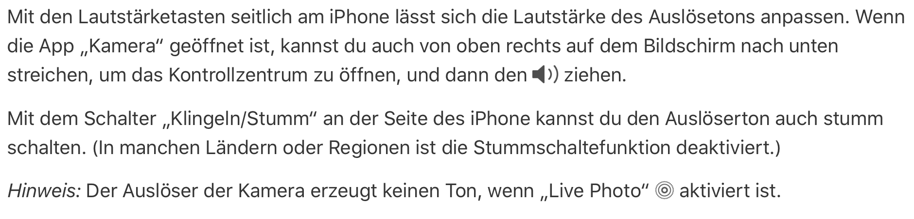 Geräte aus Japan müssen laut Gesetz stets einen Ton erzeugen, wenn ein Foto geschossen wird. Dadurch sollen geheime Aufnahmen verhindert werden.