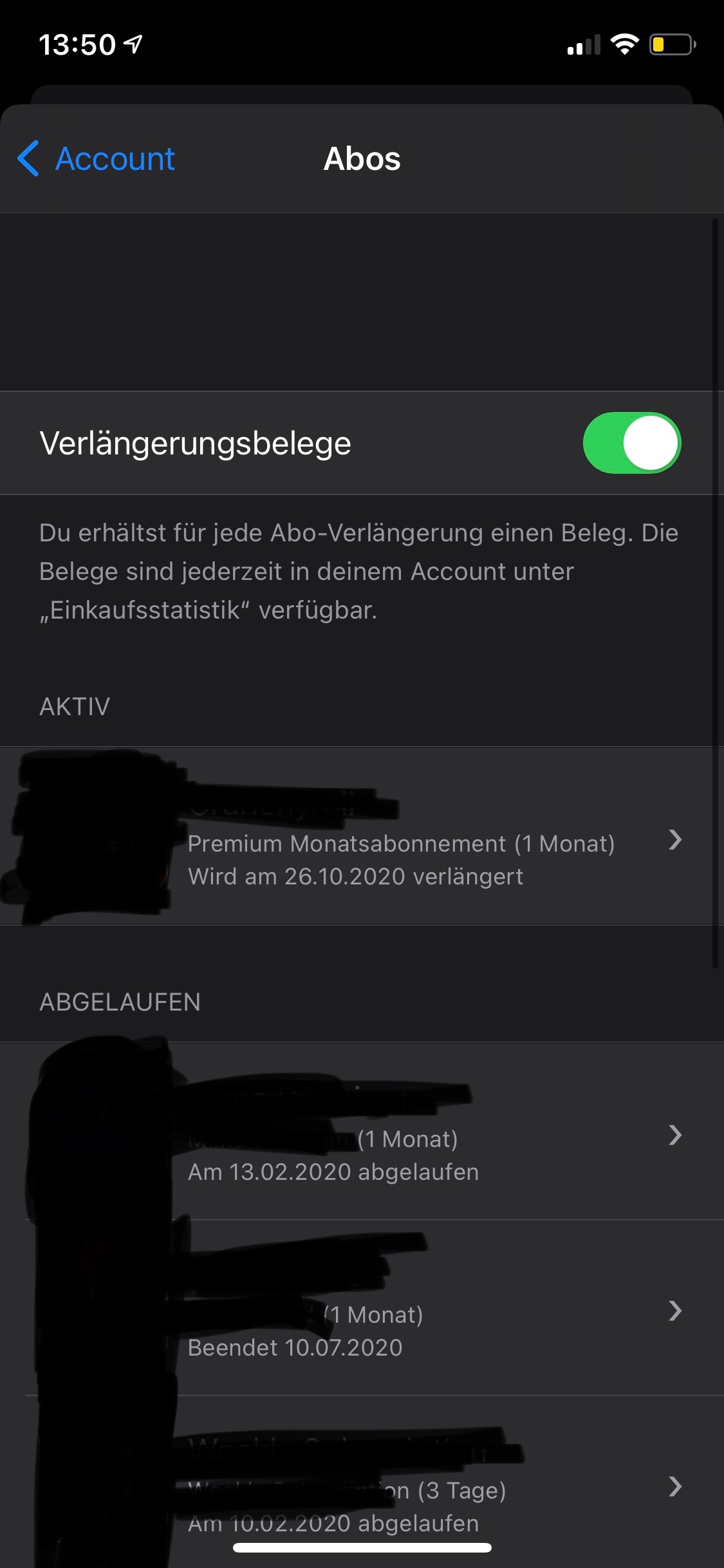 Abgelaufene Abonnements aus der Ansicht entfernen
