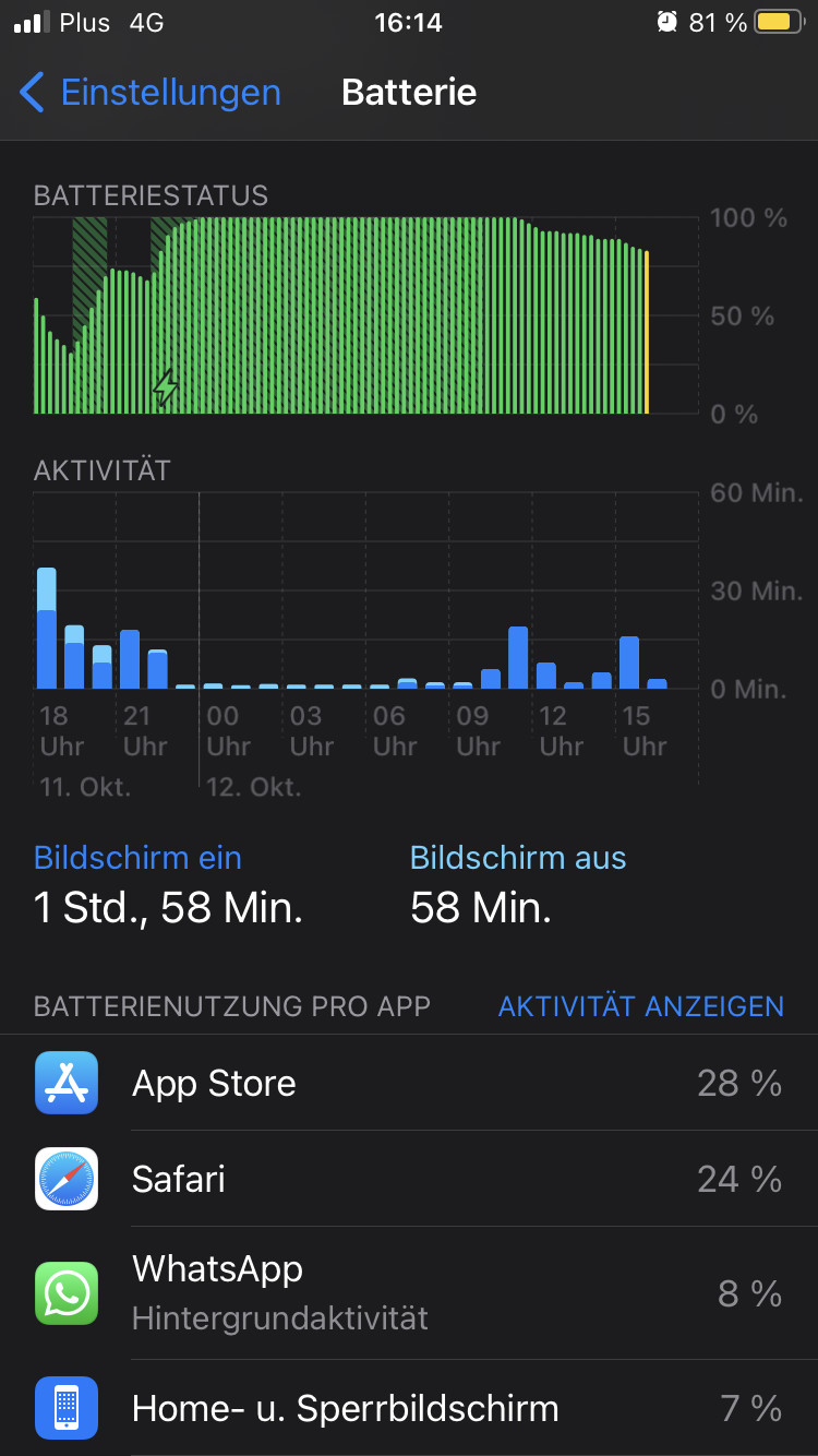 Gehe mal in die Einstellungen - Batterie. Was steht da bei maximale Batteriekapazität?