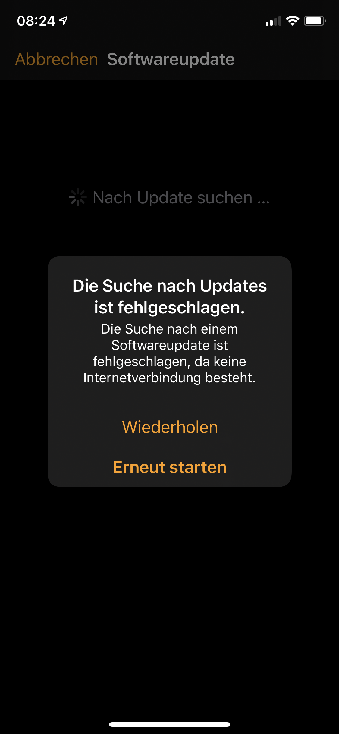 Dies versuche ich schon seit gestern. Ich habe die Geräte, also die Apple Watch und mein iPhone schon mehrfach neu gestartet und auch die Apple Watch App deinstalliert und wieder neu installiert. Leider komme ich nicht weiter. beim Drücken auf wiederholen passiert das ganze hier nach paar Sekunden erneut. Beim Drücken auf erneut starten entkoppelt er die Geräte wieder, ich fange wieder von vorne an und lande letzt endlich wieder hier.