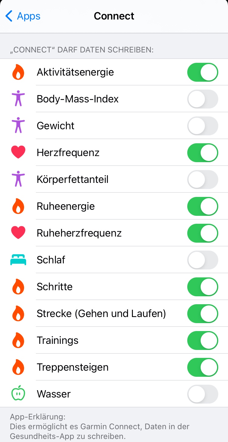 Screenshot: Apple Health-Einstellung auf dem iPhone