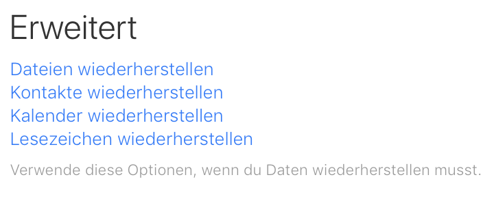 Support-Artikel: Versehentlich aus iCloud gelöschte Kalender, Lesezeichen oder Kontakte - Apple Support