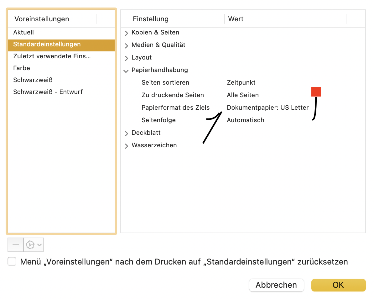 Ich finde es komisch und einfach falsch, dass die PDF im Format "Letter" gespeichert werden und ich das nicht ändern kann. Oder geht das und ich finde das nicht? DAS ist im Grunde meine Frage. Denn die Funktion ist ansonsten wirklicher sehr gut und alles, was ich brauche (und das recht häufig).