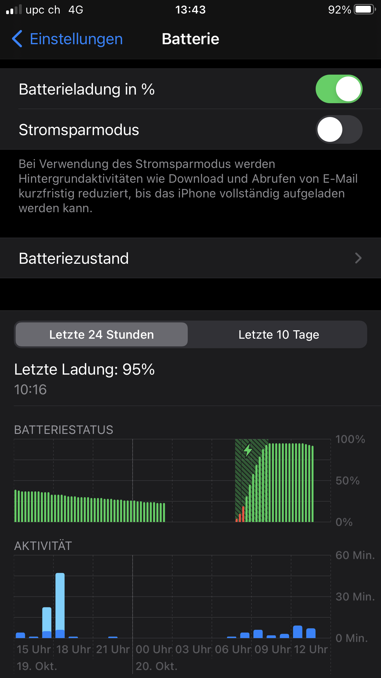 Seit Covid Update ist Akku ab 20% plötzlich leer. Kann erst nach ca. 20 Minuten am Strom wieder gestartet werden. Akku ist soweit ok (94%) iPhone8 plus