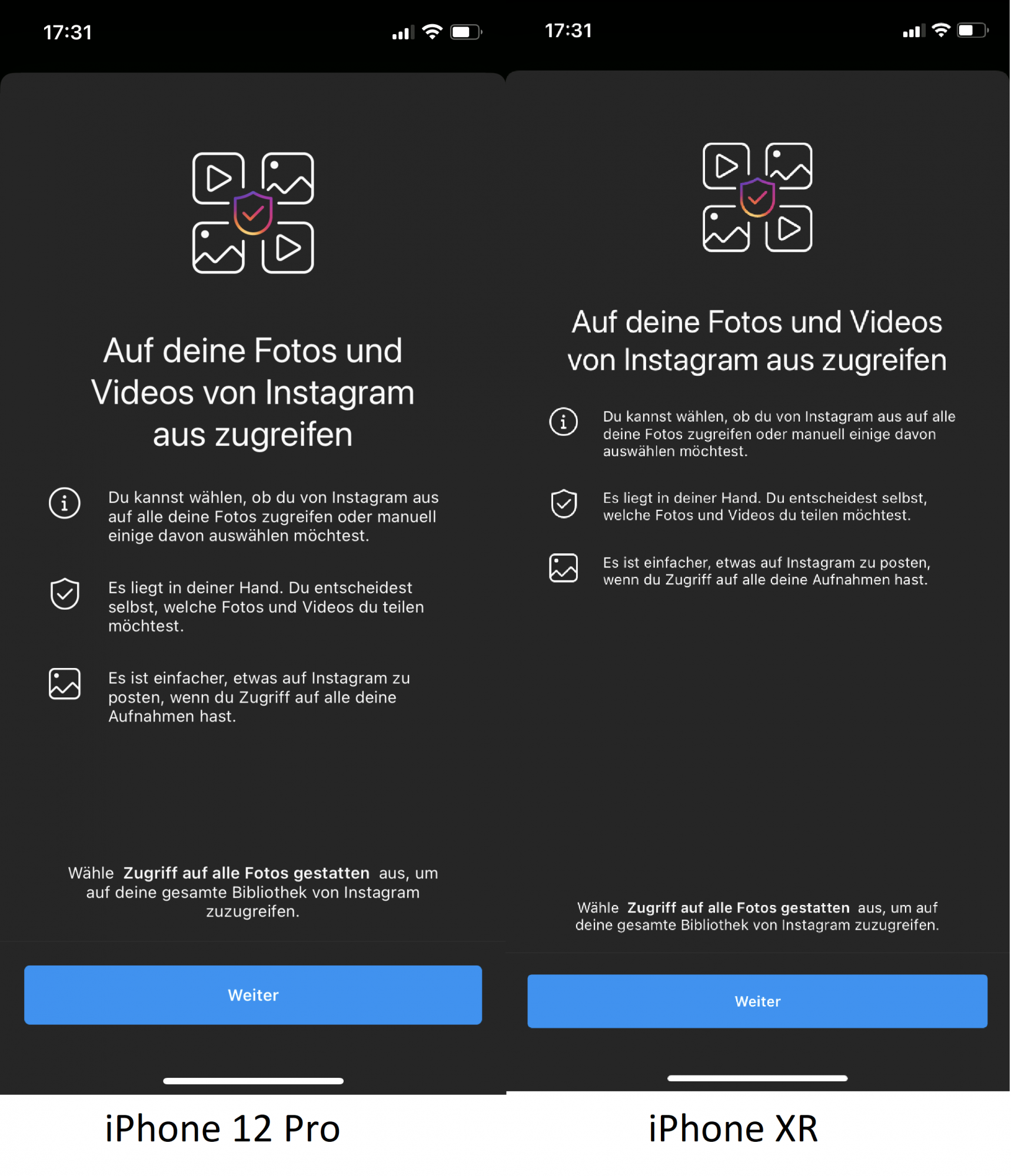 Das führt leider dazu, dass im Vergleich zu einem ALTEN iPhone 11 / XR deutlich weniger Inhalt angezeigt wird. Es wird also kein Nutzen aus dem neuen großen Bildschirm in der Pro Reihe gemacht, sondern einfach nur hochskaliert. Somit ist mit dem nagelneuen iPhone im Vergleich zu einem alten iPhone 11 / XR weniger Inhalt zu sehen. Dies betrifft leider sogar direkt Apple eigene Apps, wie auch 3. Anbieter Apps.