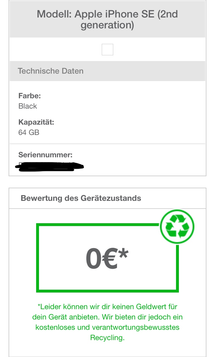 ich kann nirgendwo die Option finden, mein SE 2020 als Trade In auszuwählen. Alle anderen iPhones werden aufgelistet, nur dieses nicht. Gibt es dafür einen bestimmten Grund?