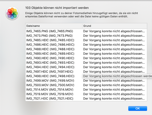 Hallo, hat jemand eine Idee, wieso sich die Photos vom iPhone 11 Pro (iOS 14.01.01) nicht auf meinen Apple Rechner (macOS High Sierra 10.13.6) übertragen lassen. Es erscheint die Meldung: Diese Objekte können nicht zu deiner Fotomediathek hinzugefügt werden, da sie ein nicht erkanntes Dateiformat verwendet.